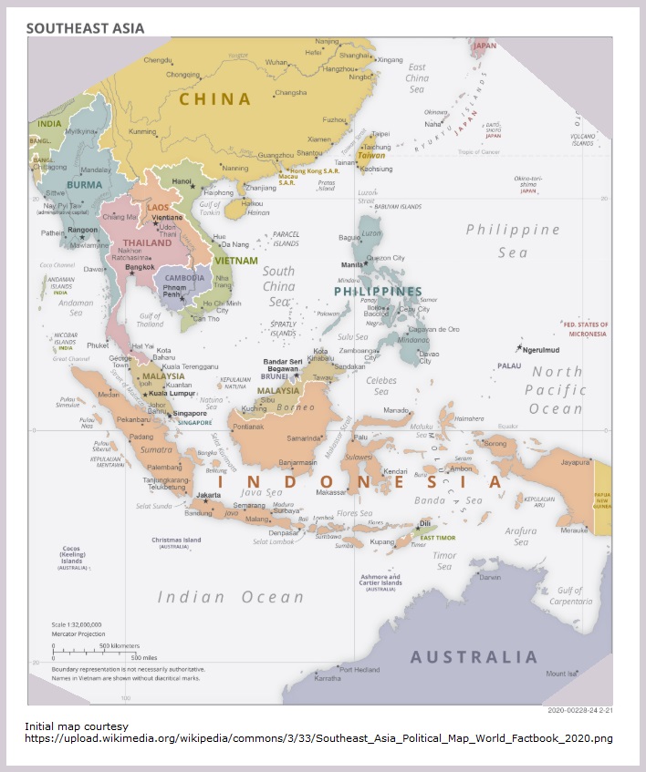 There is a map provided at the link https://upload.wikimedia.org/wikipedia/commons/3/33/Southeast_Asia_Political_Map_World_Factbook_2020.png